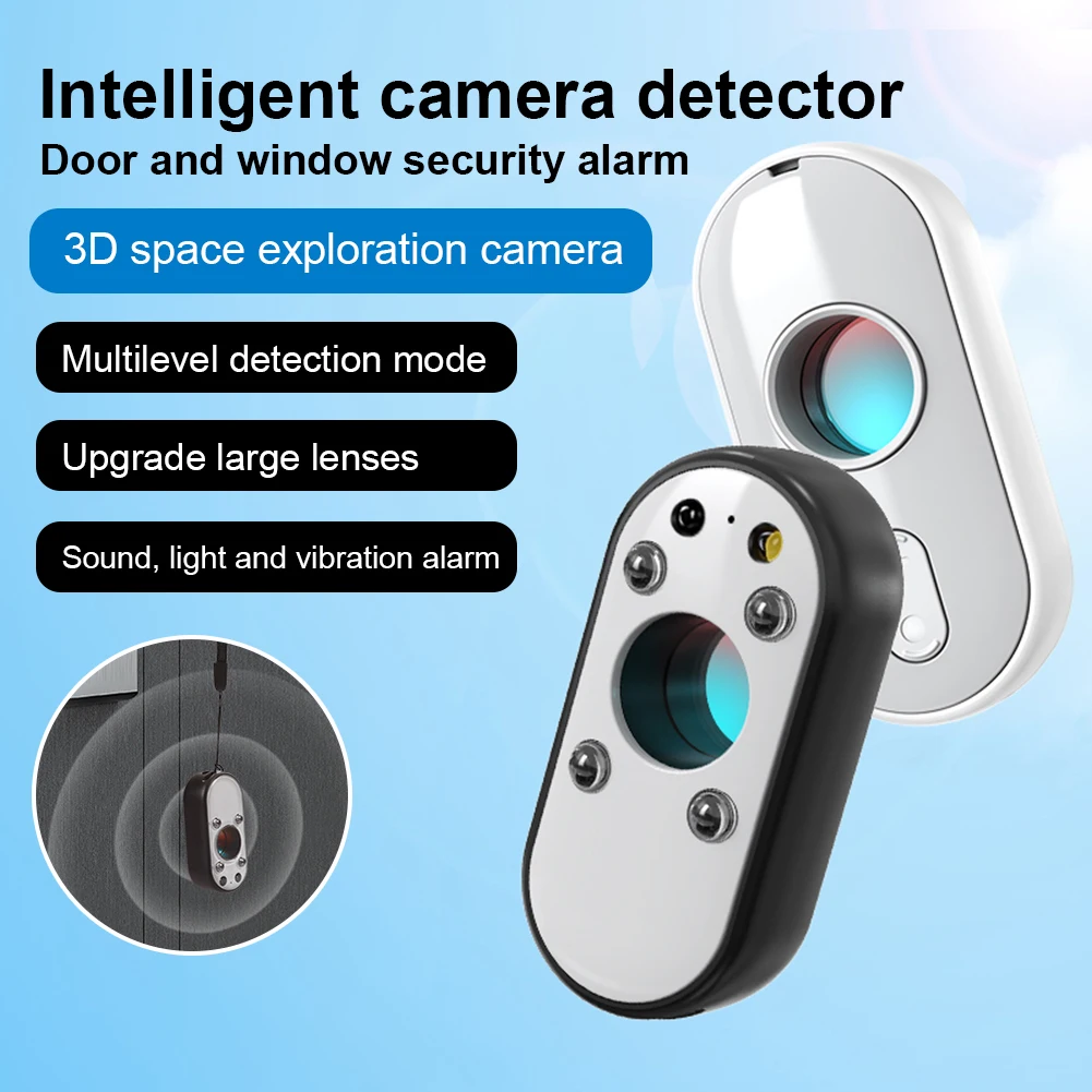 1. Comprehensive Dual Detection: Utilizing advanced lens reflection and infrared wavelength detection technologies, this camera detector ensures thorough scanning for all types of cameras. Whether hidden in power strips, showerheads, hooks, TVs, or vents, it effectively identifies concealed cameras, offering peace of mind and privacy protection.